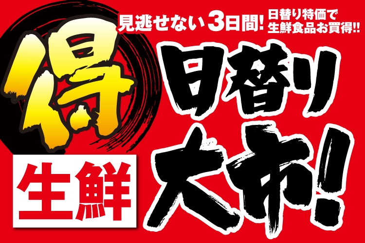 10月1日(水)~10月3日(金)生鮮日替り大市!実施中です★見逃せない3日間!生鮮食品がお買い得です!下記の「詳細を見る」から、ご利用店舗のチラシをご覧ください。チラシ情報はいなげやホームページの他にも、いなげや公式アプリ、LINEミニアプリからもご覧いただけます!